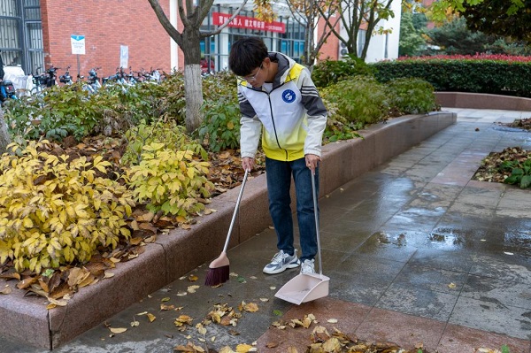 测绘学院开展清理校园落叶活动